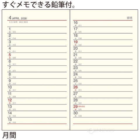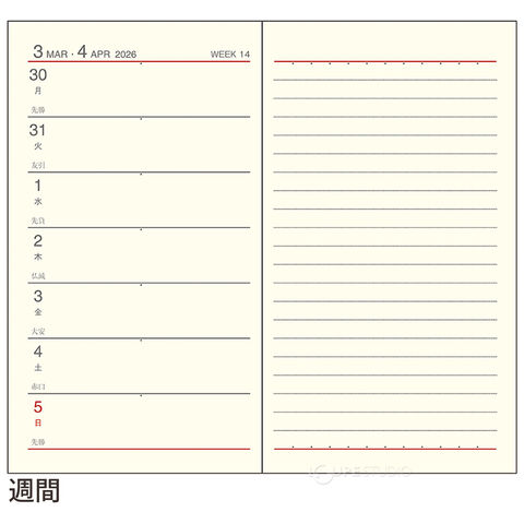 | 主レイアウト | 1週間+横罫 |