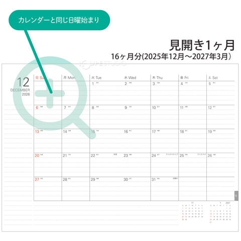 | 主レイアウト | 1ヶ月ブロック見開き1ヶ月 |