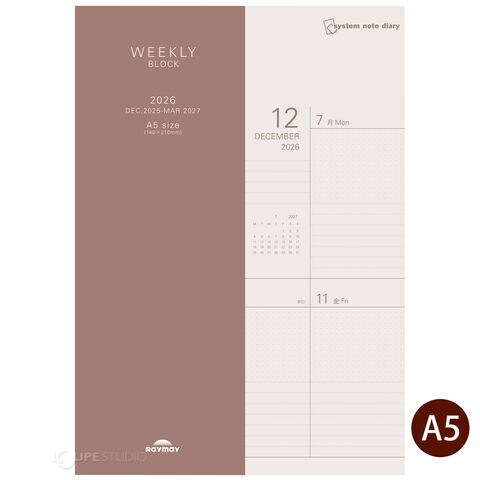 レイメイ スケジュール帳 ノート 2026年 1月始まり 2025年12月 システムノートダイアリー 週間 月曜始まり ビジネス手帳 持ち歩き Raymay 24システムノートダイアリー ウィークリーブロックA5スペック