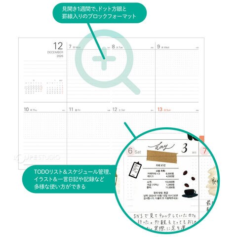 | レイアウト | ウィークリー、週間、ブロック+バーチカル |