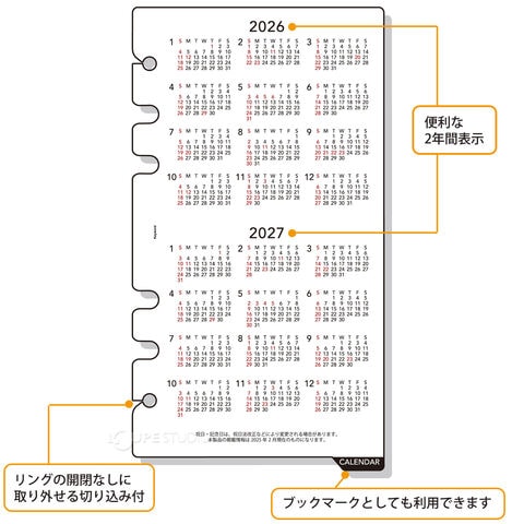 レイメイ藤井 システム手帳 2026年 スケジュール帳 ビジネス手帳 バイブルサイズ 持ち歩き Raymay 24K/W 聖書下敷カレンダースペック