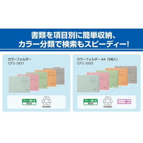 フォルダー ファイル カラーフォルダー A4 収納 整理 仕分け 保管 事務用品 文具 書類 資料 プリント オフィス 学生 シンプル おしゃれ かわいい セキセイスペック