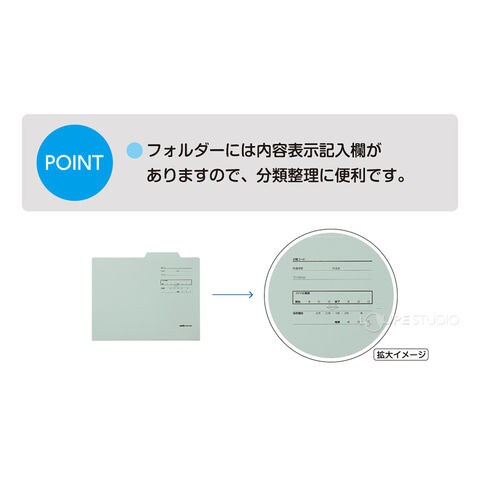 • フォルダーには内容表示記入欄がありますので、分類整理に便利です。
