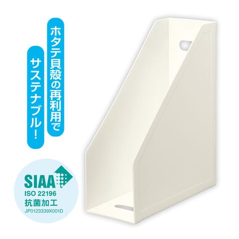 ホタテ貝殻の再利用でサステナブル!ホタテ抗菌作用で安全&清潔に使えるファイルボックス。