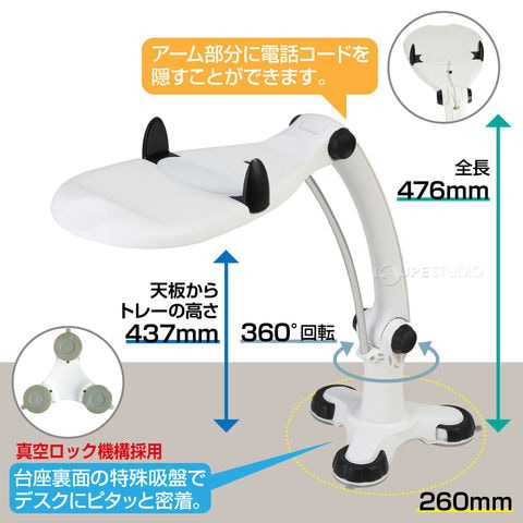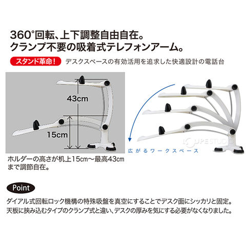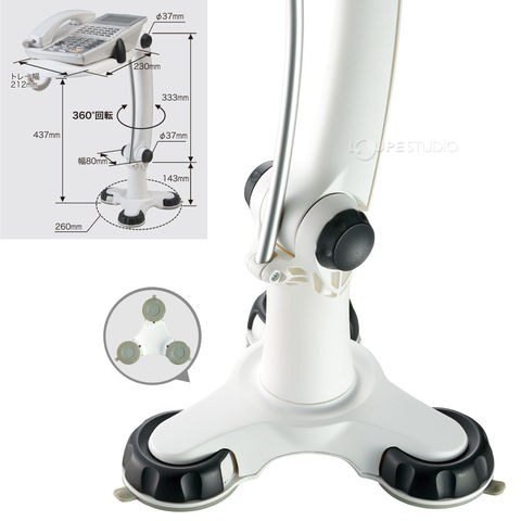 360°回転、上下調節自由自在。クランプ不要の吸着式テレフォンアーム