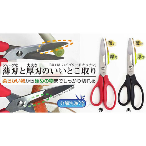 薄+厚ハイブリッドキッチン 赤 黒 関の刃物 岐阜 簡単料理 時短料理 ハイブリッドキッチン キッチンバサミ キッチンハサミ キッチンばさみ 料理ハサミ 軽量 キッチンツール 木村刃物製作所