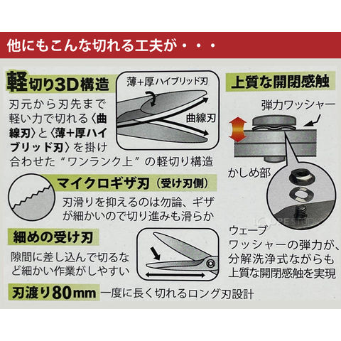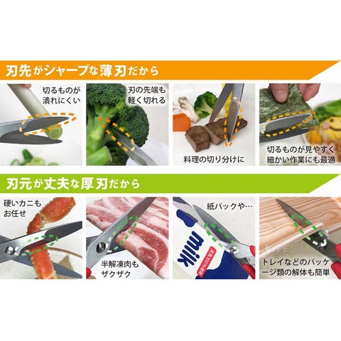 薄+厚ハイブリッドキッチン 赤 黒 関の刃物 岐阜 簡単料理 時短料理 ハイブリッドキッチン キッチンバサミ キッチンハサミ キッチンばさみ 料理ハサミ 軽量 キッチンツール 木村刃物製作所スペック