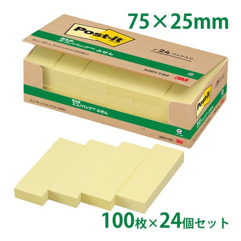 付箋 ふせん 3M ポストイット エコノパックTM+ふせん 再生紙 イエロー 75×25mm 100枚×24個セット 大容量 業務用 メモ 仕分け 分類 事務用品 オフィス 学生 勉強スペック