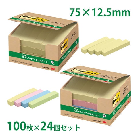 付箋 ふせん 3M ポストイット エコノパックTM+ふせんハーフ 再生紙 75×12.5mm 100枚×24個セット 大容量 業務用 メモ 仕分け 分類 事務用品 オフィス 学生 勉強スペック