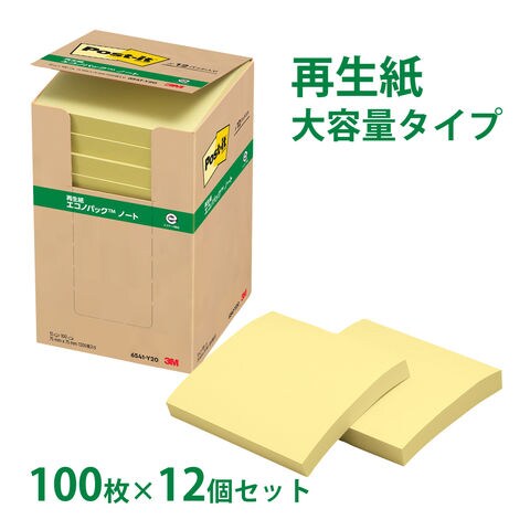 付箋 ふせん 3M ポストイット エコノパックTM+ノート 再生紙 イエロー 75×75mm 100枚×12個セット 大容量 業務用 メモ 仕分け 分類 事務用品 オフィス 学生 勉強