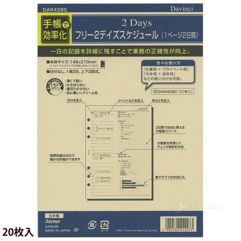 ダヴィンチA5リフィル フリー2DAYS 手帳 文具 システム手帳 スケジュール帳 差し替え 替え用紙 メモ ビジネス 予定のレビュー