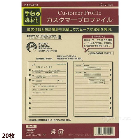 ダヴィンチA5リフィル カスタマープロF 手帳 文具 システム手帳 スケジュール帳 差し替え 替え用紙 メモ ビジネス 予定スペック