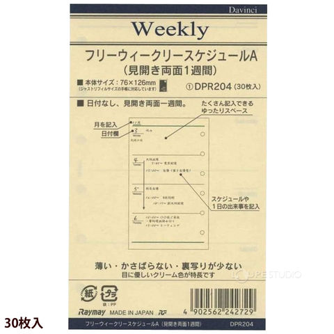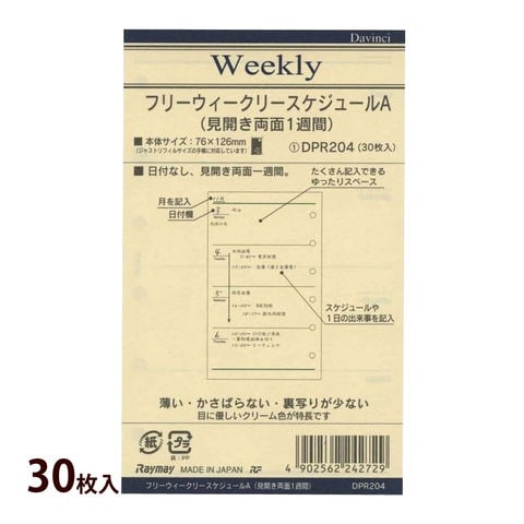 ダヴィンチ 手帳 リフィル レイメイ スケジュール帳 ビジネス手帳 ポケット 文具 ステーショナリー 差し替え 替え用紙 予定 メモ リングスペック