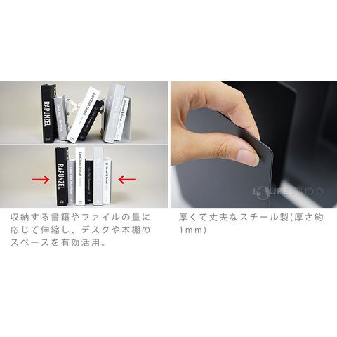 本体後部が「アコーディオン」のように伸縮するブックエンド