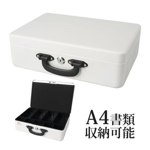 硬貨・紙幣の収納はもちろん、書類や小物類の収納もできます。簡易レジとして、貴重品を持ち運ぶ際の収納ボックスとして、さまざまな用途でお使い頂けます。丈夫な鉄製ボディ。