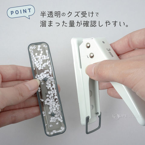 1つだけ穴をあけたい時に使用する、シンプルでスマートなデザインの1穴パンチ