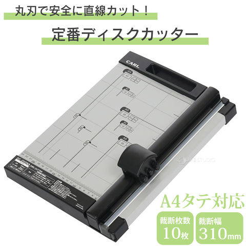 ディスクカッター A4 10枚 ペーパーカッター 裁断機 文具 カール事務機 紙 切る オフィス 事務用品 カット 手作業 簡単 軽量 薄型 ハンドル付き 持ち運び