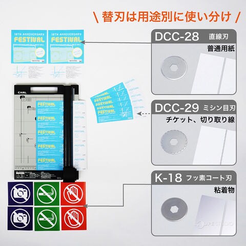 | 備考 | 裁断枚数は、コピー用紙64g/㎡(約0.09mm厚)使用時での枚数です。 「ディスクカッター」は、カール事務器(株)の登録商標です。 |