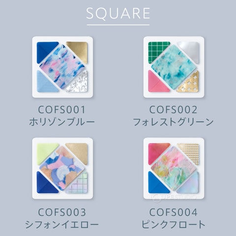 | 内容 | 【バー(BAR)】32枚入り(8枚×4デザイン) 【サークル(CIRCLE)】48枚入り(8枚×6デザイン) 【ラウンド(ROUND)】40枚入り(8枚×5デザイン) 【スクエア(SQUARE)】40枚入り(8枚×5デザイン) 【トライアングル(TRIANGLE)】48枚入り(8枚×6デザイン) |