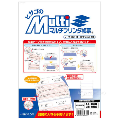 ヒサゴ マルチプリンタ帳票 A4 裏地紋 2面 密封式 100枚 BP2009TN