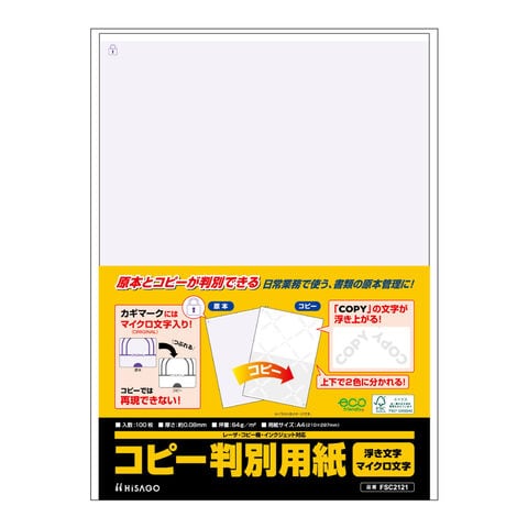 ヒサゴ コピー判別用紙 浮き文字・マイクロ文字タイプ A4 100枚 FSC2121