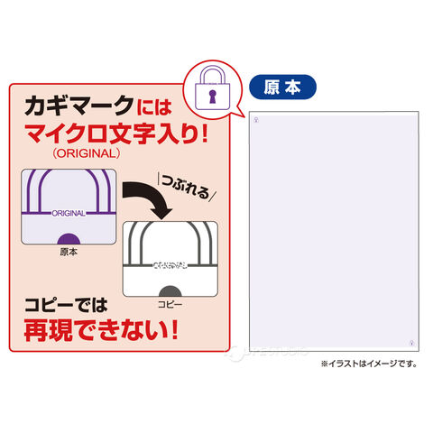 さらに用紙の2箇所の隅のカギマークの中に「ORIGINAL」とマイクロ文字が入っています。マイクロ文字は、コピーでは再現できず、文字が読めなくなるため、二重のセキュリティで原本との識別ができます。