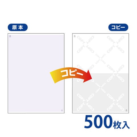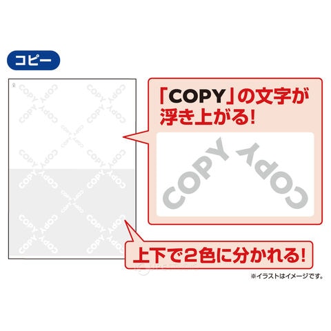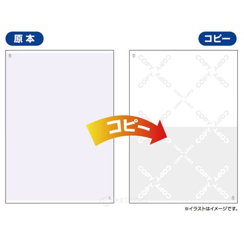 | 注意事項 | ※本製品は、その利用により、いかなる改ざんも防止することを保証するものではありません。 ※お使いになるコピー機の種類や設定(カラーモードなど)によっては、正常な効果が得られない場合があります。 ※コピー側の書類の内容を読めなくするものではありません。 ※FAX・スキャナでも同様の効果が得られます。 |