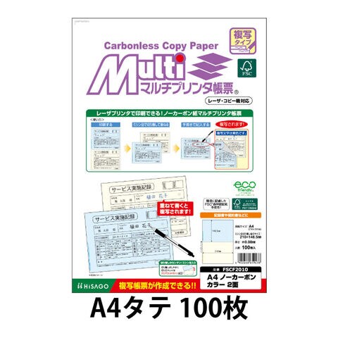 ヒサゴ FSC(R)認証マルチプリンタ帳票複写タイプ A4 ノーカーボン カラー 100枚入 FSCF2010スペック