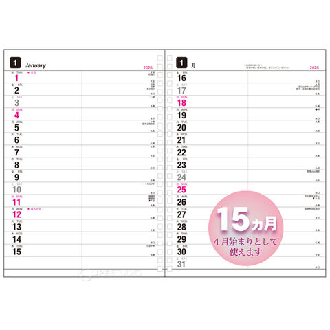| 内容 | 年間計画表、月間ダイアリー、LIFE PLAN、統計、ノート、アドレス、資料編 |