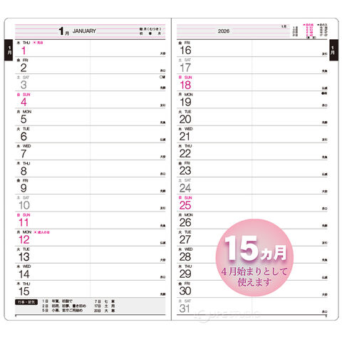 | 主レイアウト | 1ヶ月横罫 |