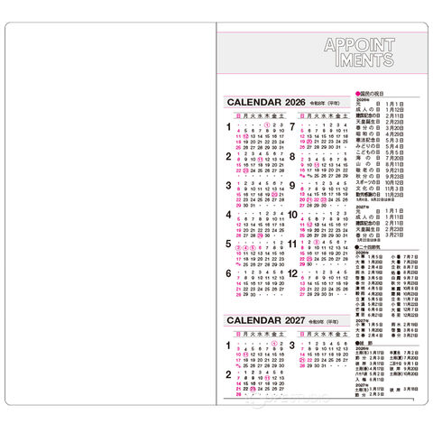 | 内容 | 年間計画表、月間ダイアリー、ノート、アドレス、資料編 |