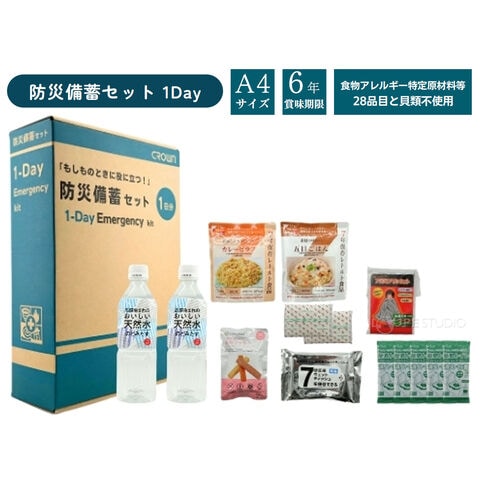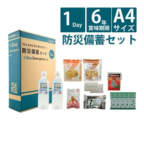 防災備蓄セット 1DAY CROWN 1日分 防災グッズ 防災セット A4サイズ 食品 おかず 非常食 防災食 簡易トイレ 災害用 簡易トイレ 災害 地震 備蓄 賞味期限6年保証