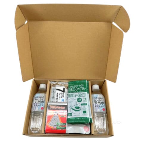 | セット内容 | 7年保存レトルト米粉クッキー1個 7年保存レトルト食品カレーピラフ1個 7年保存レトルト食品五目ごはん1個 7年保存水500ml2本 非常用簡易トイレ(汚物袋1枚+凝固剤1個)1回分5個 7年保存できる防災用ウェットティッシュ20枚入り1個 アルミブランケット1枚 ポケットティッシュ2個 |