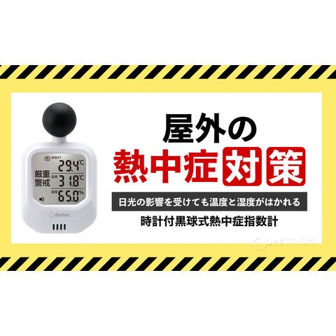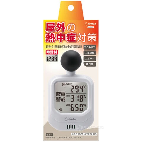熱中症指数計 壁掛け 屋外 ドリテック 時計付 黒球式熱中症計 温湿度計 熱中症計 カラビナ バンド付 熱中症 対策 温度計 気温 湿度計 夏 暑さ対策 アラーム おすすめ DRETEC
