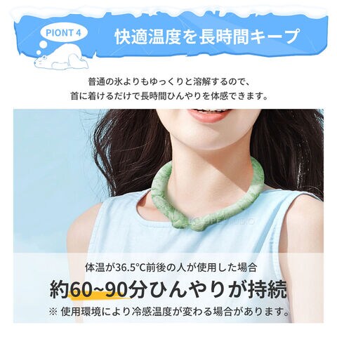 長時間持続 フリーサイズ メンズ レディース 大人用 男女兼用 ひんやりリング。首回り34.5cm
