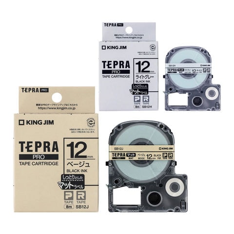 テプラテープ 純正 マットラベル 黒文字 キングジム 12mm カートリッジ ベージュ ライトグレー 詰替え 交換 ラベルシール 家庭 オフィス 名前シール タイトル