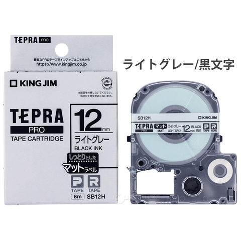 テプラテープ 純正 マットラベル 黒文字 キングジム 12mm カートリッジ ベージュ ライトグレー 詰替え 交換 ラベルシール 家庭 オフィス 名前シール タイトル スペック