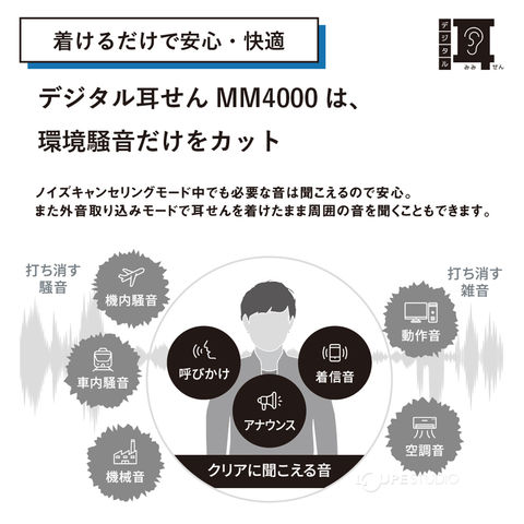 デジタル耳栓 MM4000 キングジム 耳せん 騒音カット イヤホン ノイズキャンセリング 電池式 声がクリアに聞こえる 防塵 防水 工場 作業 電車 移動中 勉強 読書 KING JIM