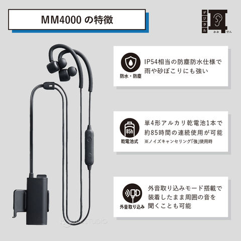 デジタル耳栓 MM4000 キングジム 耳せん 騒音カット イヤホン ノイズキャンセリング 電池式 声がクリアに聞こえる 防塵 防水 工場 作業 電車 移動中 勉強 読書 KING JIM スペック