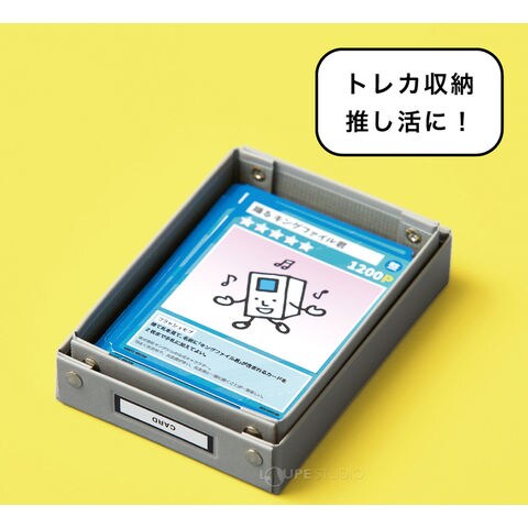- トレーディングカード、ポイントカード、名刺などのカードサイズのアイテムだけでなく、付箋やクリップといった細かい小物の整理にもおすすめです。トレーの収納目安は名刺が約100枚、トレーディングカードが約50枚です。