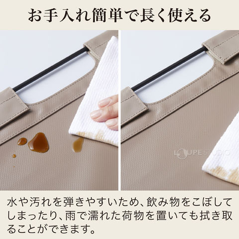- ターポリン生地に耐水性はありますが、本製品は収納物を水から完全に保護するものではありません。また、濡れてしまった際は、よく乾かしてからご使用ください。