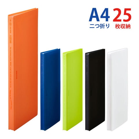 クリアーファイル ホッソ A4サイズ 25枚収納 二つ折り 1/2タテ 見開き