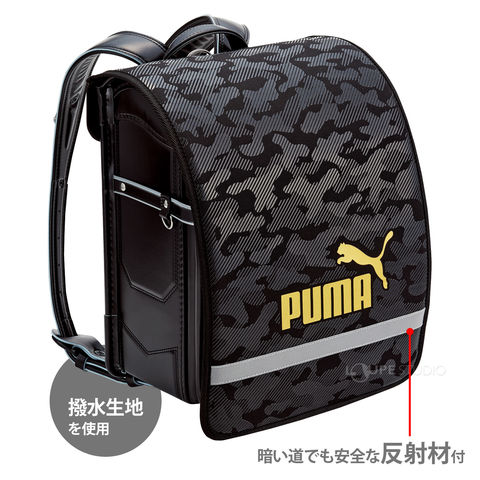 ランドセルカバー 男の子 小学生 プーマ 子供 撥水加工 入学 通学 登下校 雨 保護シート カモ柄 かっこいい 反射材付き 夜間 光る 安全 安心 黒 スペック