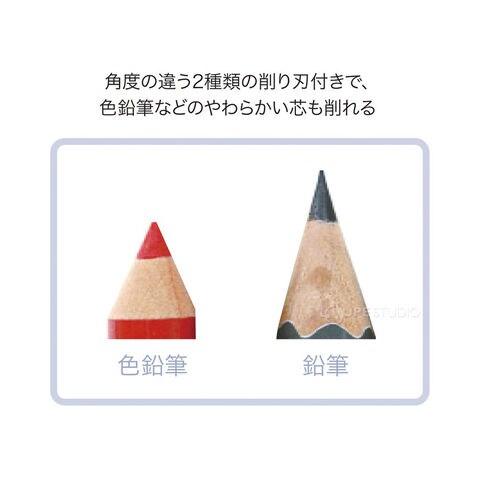 - 色鉛筆などのやわらかい芯も削れる2WAYタイプ