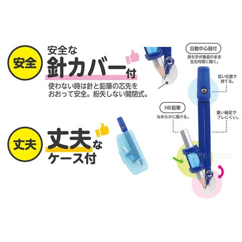コンパス 文具 小学生 学校 教材 学童用品 算数 授業 学習 えんぴつ 円 作図 図形 丸 回しやすいコンパス鉛筆用 ブルー クツワスペック