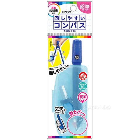コンパス 文具 小学生 学校 教材 学童用品 算数 授業 学習 えんぴつ 円 作図 図形 丸 回しやすいコンパス鉛筆用 ブルー クツワ