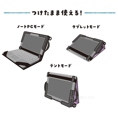- ノートPCを折り返しタブレットモードとして使用する際もつけたまま操作可能