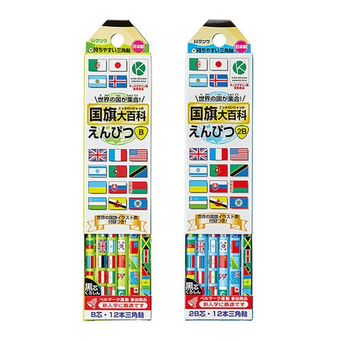 鉛筆 STAD国旗大百科鉛筆 えんぴつ B 2B 小学生 学校 入学 子供 キッズ 文具 筆記用具 学習 勉強 三角鉛筆 国旗 国名 日本製スペック