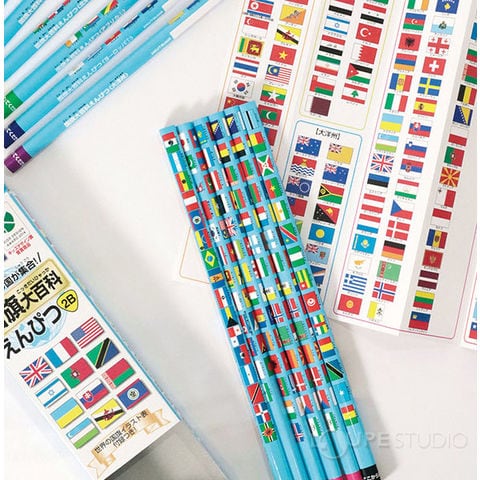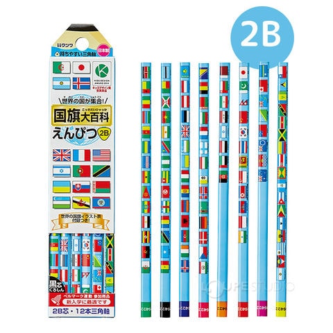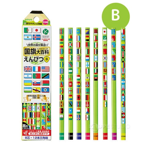 鉛筆 STAD国旗大百科鉛筆 えんぴつ B 2B 小学生 学校 入学 子供 キッズ 文具 筆記用具 学習 勉強 三角鉛筆 国旗 国名 日本製
