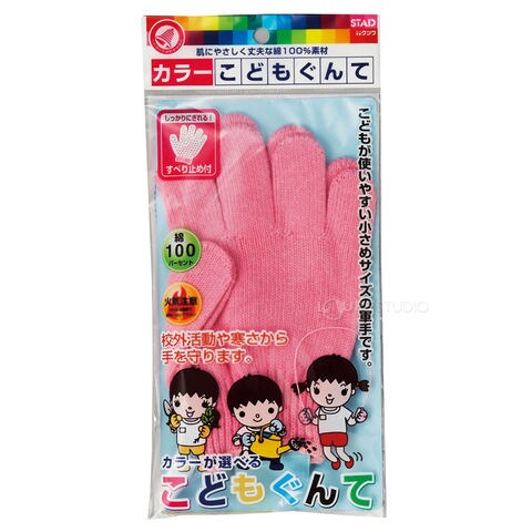 軍手 子供 カラー こども ぐんて スベリ止め付き 手袋 綿100% キッズ S 作業 手 保護 防護 校外学習 掃除 草むしり 野外活動 ピンク ブルー